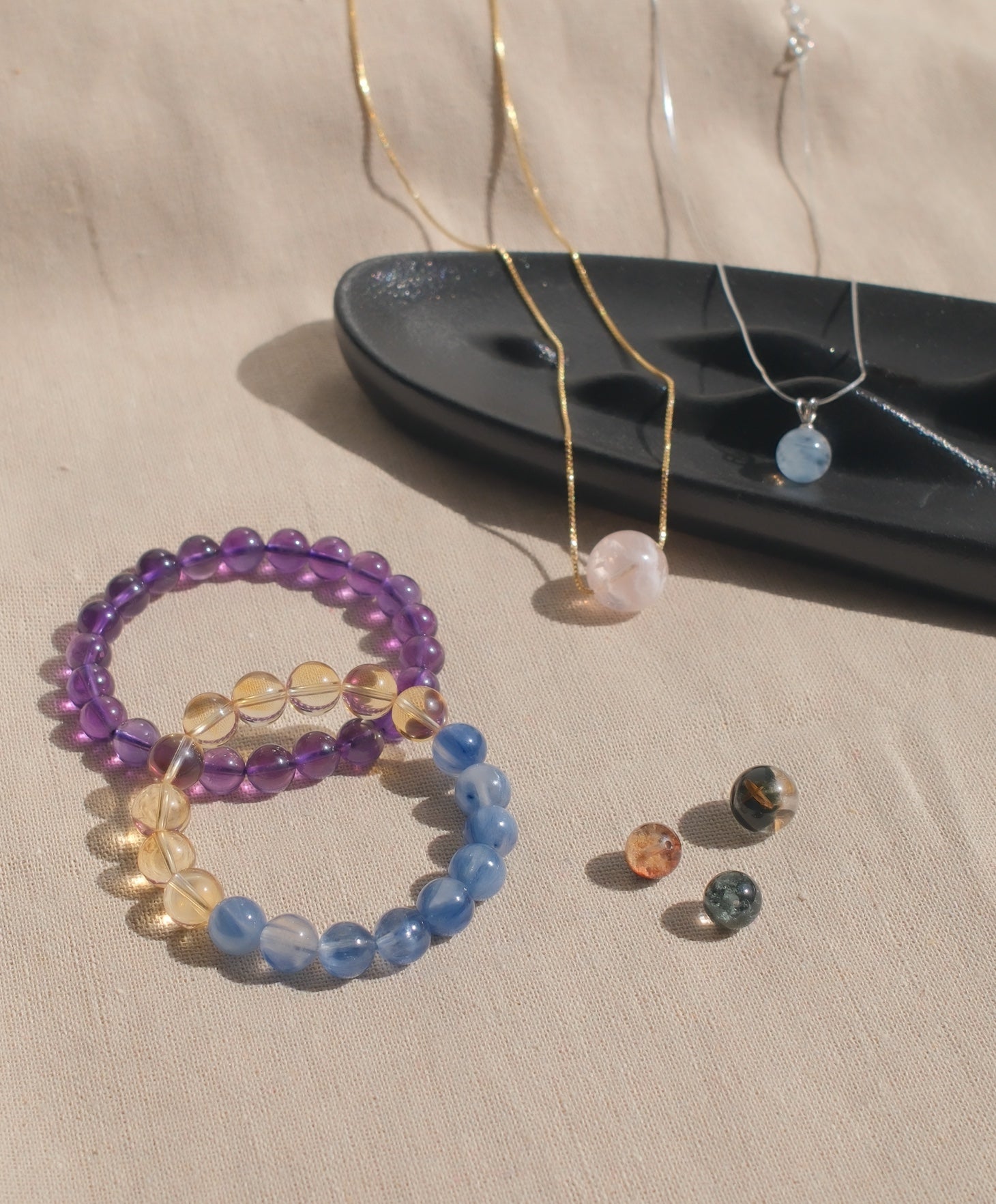 Choose from bracelets, necklaces, and charm beads — each piece crafted to carry intention and connect with your everyday energy.
