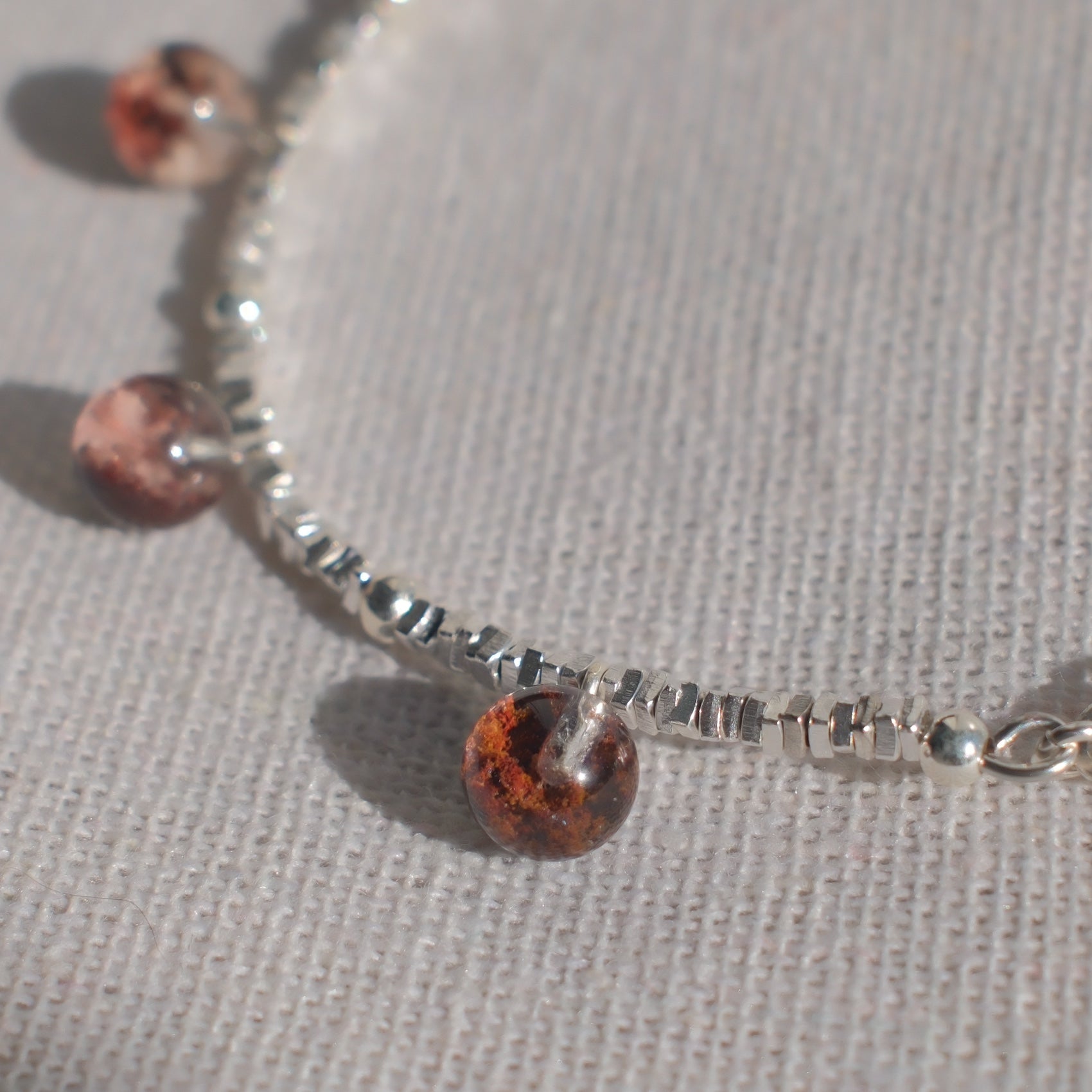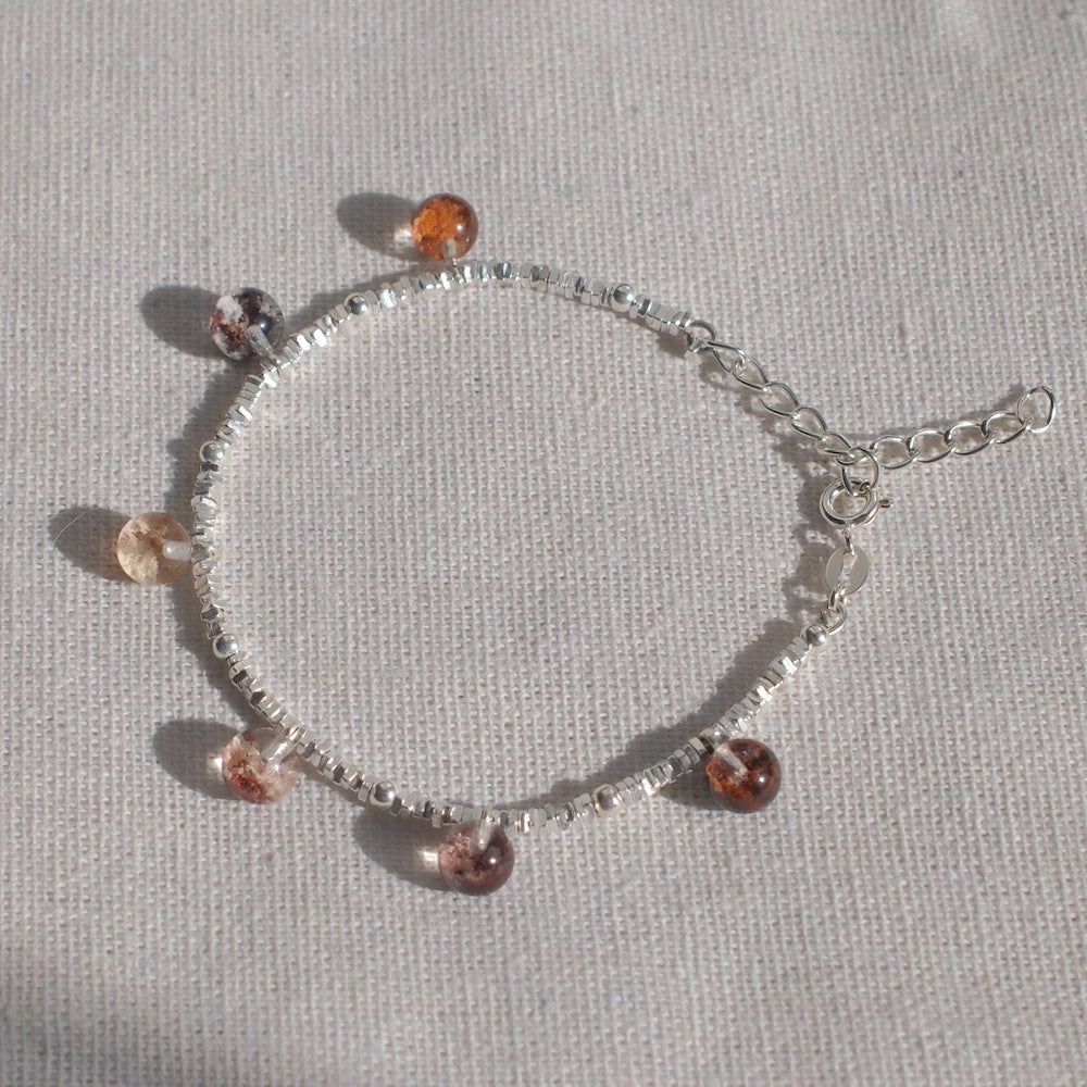 A luminous bracelet of Brazilian Bowl-shaped Phantom Quartz, where vivid hues of red, orange, purple, pink, white, and yellow form treasure-bowl patterns inside the clear crystals. Highlighted with a single pendant bead, it radiates unique charm and symbolic abundance.