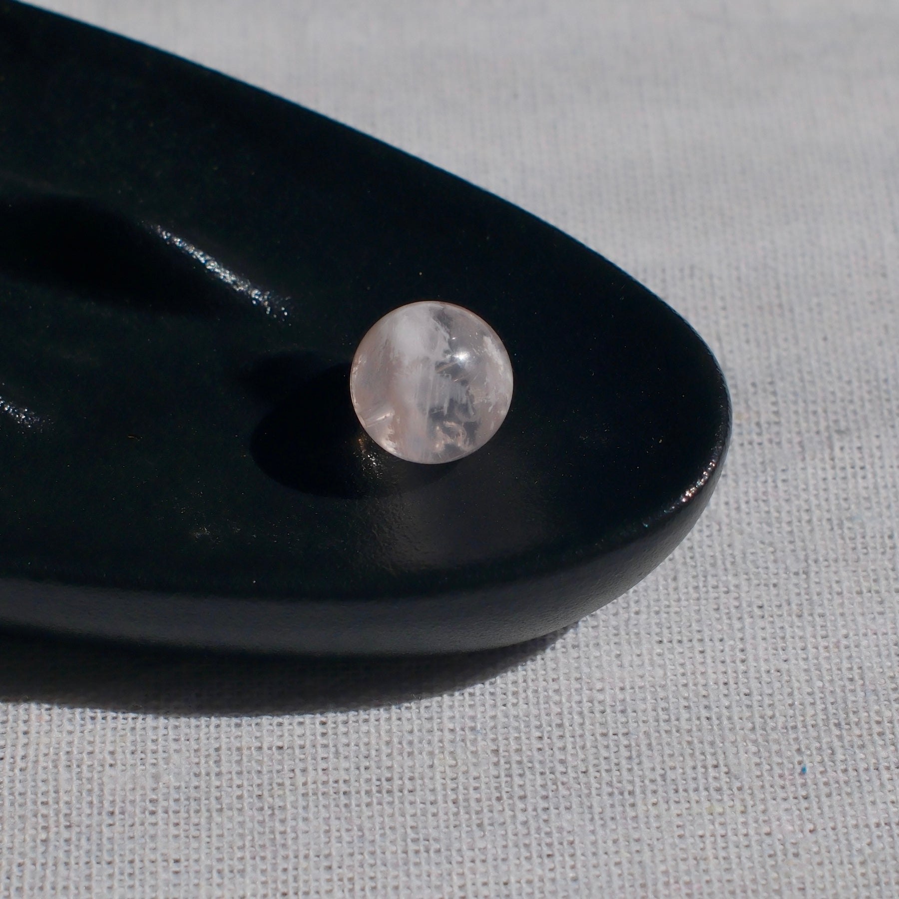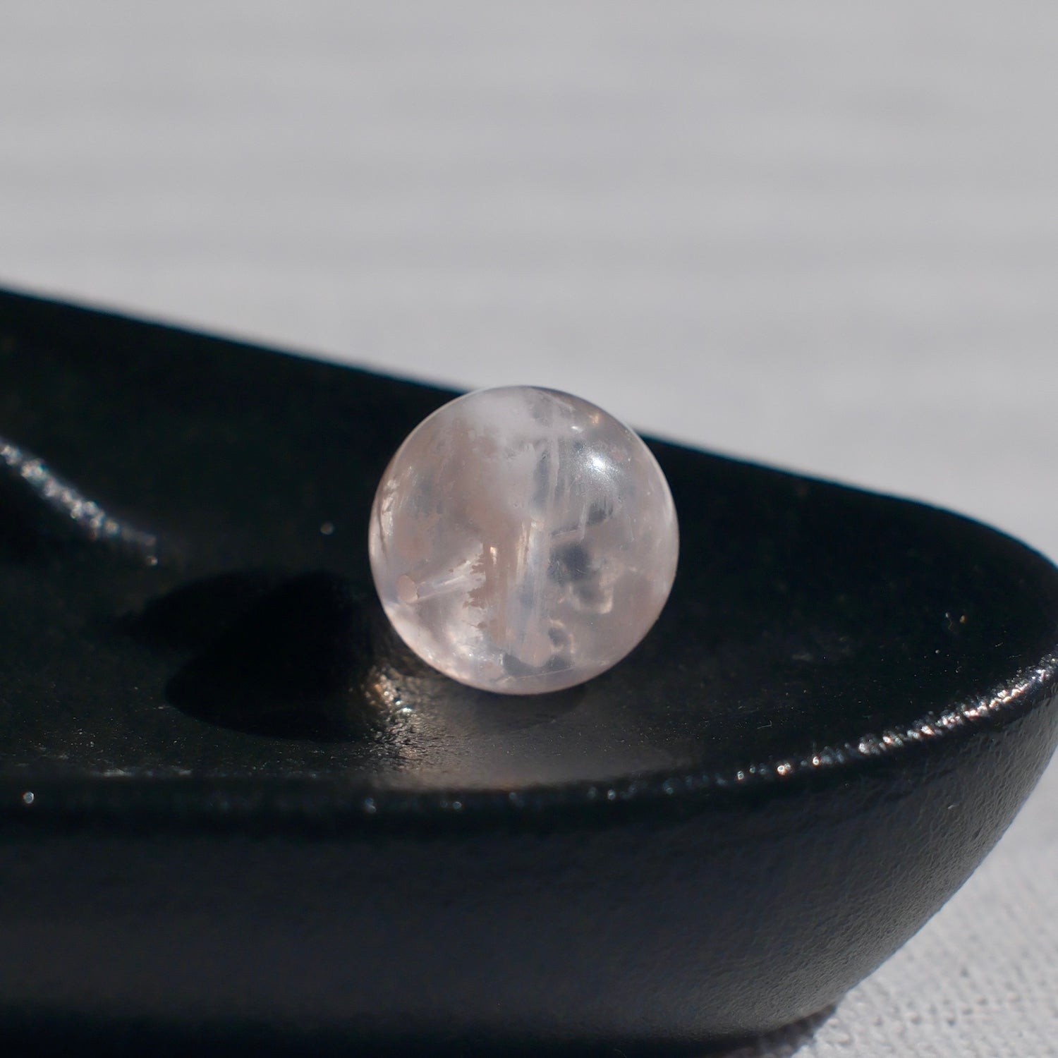 A vivid Pink Snow Phantom Quartz bead with exceptional clarity and no visible impurities. Inside the crystal, delicate snow-like and frosty inclusions create a dreamy ice-world effect, symbolizing purity and elegance. The bead is drilled through, making it perfect for crafting bracelets or necklaces with both beauty and energy.